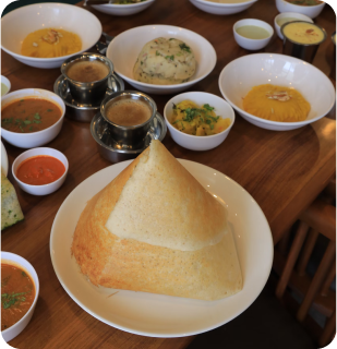 South Indian breakfast staples served warm and fresh. Idli, dosa, and more for a nourishing start.